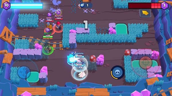 3V3战斗,收集地图中心的宝石矿井里冒出的宝石,或是干掉对手并抢走他们的宝石!集齐10颗宝石并坚持到计时结束后即可赢得对战!