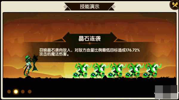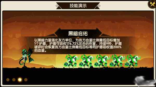 游戏内黑暗贤者艾琳娜的技能,偏治疗和辅助增益效果。1技能为单体伤害,2技能可以保护残血队友,加护盾和回血,避免中后排被切死,大招全体血量恢复和全体暴击率加成,保证队伍续航和强化队伍输出效果。是目前游戏内综合实力相当强力的辅助角色。