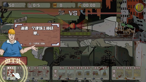 建筑队大战僵尸手机版最新版也叫建筑工也疯狂,是一款非常别致的塔防策略小游戏,玩法与传统塔防游戏略有区别,在这里您不仅要考虑出战阵容的搭配,还要关注矿石资源的损耗。游戏内拥有不同类型的建筑,民房可以提升人口上限,采集场可以增加矿石产出,警卫室可以训练民兵,战车厂可以生产吉普车,酒馆则能招募醉汉。