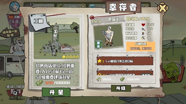 工棚主要用于招募肉盾单位,也就是建筑工,招募需要1人口50矿石。提升工棚等级,可以提升建筑工属性,当前升级工棚的主要资源就是钞票,也就是所谓的金币。