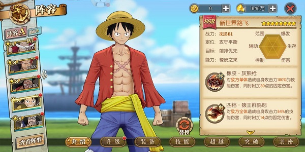 这套黄猿加点适合我的阵容,不过我的阵容不是特别难凑齐,大熊可以用路飞替换,雷神如果没有香吉士也可以。