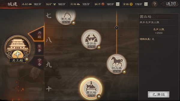 11、圆丘坛:提高名声值上限(就是提高领地上限)
