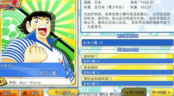 虽一直随画家父亲四处漂泊,但一直坚守足球梦想并珍惜每一次参赛机会为之全力拼搏。作为大空翼的黄金搭档,岬太郎与大空翼配合下的双人射门绝技堪称完美。手游中该球员更是拥有过硬的属性数据,与大空翼同时上场更有出其不意的配合效果。