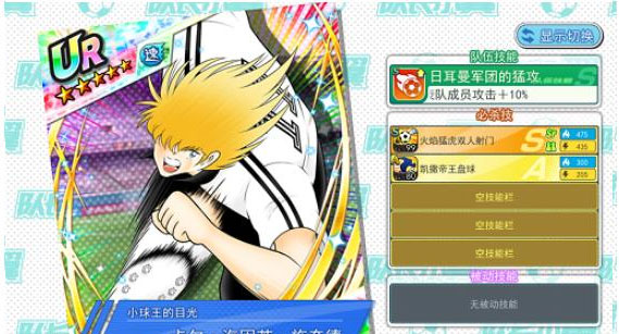 作为绝对主角,大空翼标志性的“足球是朋友。”及永不放弃的拼搏精神也深深的影响了一代人。在手游中,大空翼自然是球场上的进攻主力,其旋转射门的超级绝技、以及在攻击、防御和体能方面深厚的成长潜力据对是征战俱乐部不可缺少的球员。