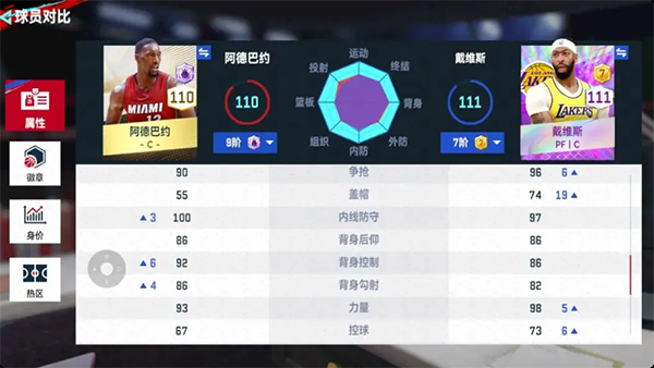 ③然后是阿德巴约,阿德巴约属于各方面都比较均衡,像禁区终结,中投都不错。而阿德巴约还有一个特点,就是硬!这里指的不仅是肌肉硬,可以看到阿德巴约的内线指数都特别高,内线防守,内线背身以及力量,所以遇到一般的中锋,阿德巴约完全可以背打进去完成终结。