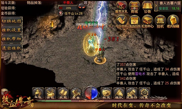 经典画面,高清画质,完全复刻经典传奇画面,并在原有基础上大大提高画质,新增多种游戏特效设置,增加各种人性化玩法,立足于经典,更超越经典!