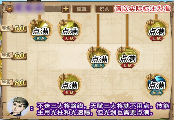 光柱点满,这个是主用的技能。奥义以及状态,被动与天赋都点满。