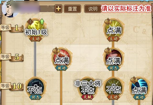 光速踢点满,状态斩杀点满,刷剧情很好用的。其他的被动也需要点满,天赋三大将需要三人同时上场,现在的赤犬优先级不高,而青雉打PVP还可以,打PVE刷剧情接近废卡,所以黄猿的这个三大将天赋,除非是走纯海军阵容,否则不建议点。