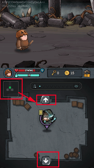 2、游戏下方左上角显示为地图,其中的方向键按钮可切换不同的地图