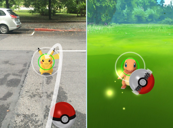 点选你的神奇宝贝球滑向神奇宝贝就可以开始抓取了。点击宝贝球可以看到中间有个绿色圈圈不断由大而小的出现,如果你能够将宝贝球掷入圈内,就能得到额外的经验值。如果你按着宝贝球不断画圈,宝贝球就会开始转动,这时你丢出宝贝球就会变成抛物线,如果成功抓取一样会有额外的经验值喔!(建议关闭及时AR 模式比较好抓取也比较省电)