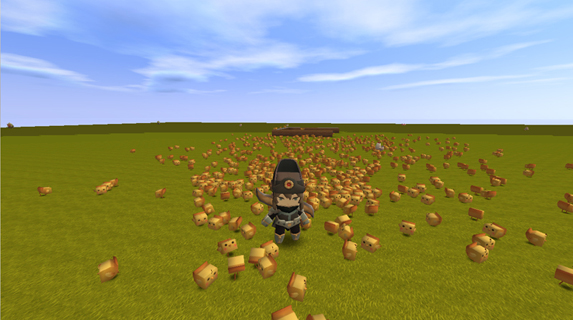 我老胖哒想要整蛊岚小南,当小南开始移动的时候,他身边就会出现10只小鸡。