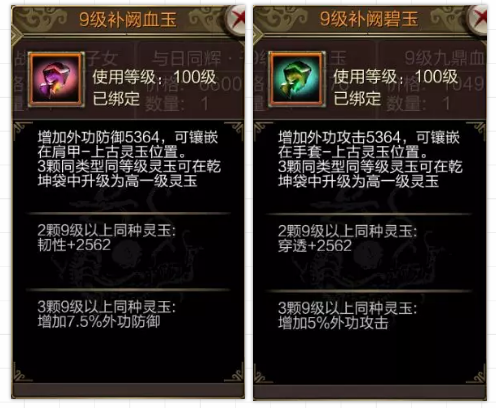 拥有三颗9级以上的同种灵玉,可激活3件套效果;