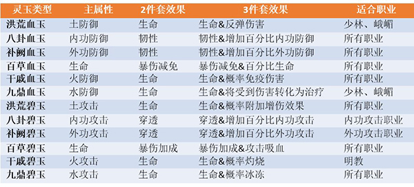 每种灵玉的主属性和套装属性各不相同,玩家可选择适合自己养成方向的。