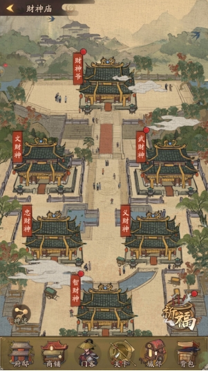 3、游历完就去财神庙,每天有个随机buff的,如果先做其他的事情,有可能吃不到这个buff带来的效果。比如老壶今天的buff是膜拜加30元宝,但是已经先一步膜拜完了,那这个buff就亏了。