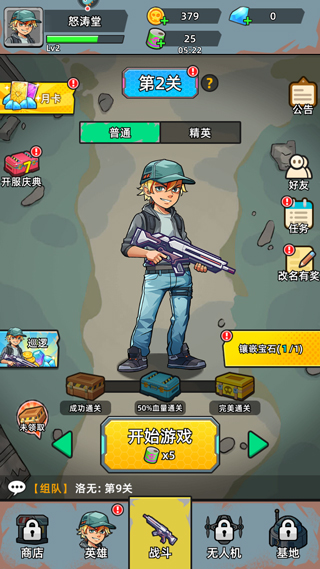 3、开始游戏如图,游戏采用自动攻击,玩家需抵御僵尸的进攻;