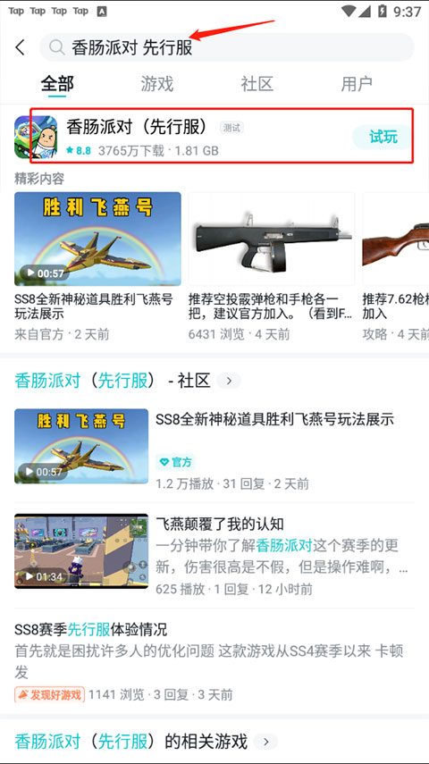 2、点击香肠派对这个游戏,点击右上角的论坛。