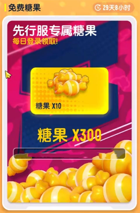 1、首先先行服的每日奖励可以领取10糖果,一共可以领取30天,共300糖果。