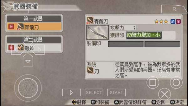 ③编年史模式:由六边格子组成中国地图貌,每个都是一个城或一关,打一把剑样子的格子得武器,打老虎样子的格子得支援兽,还能与诸多武将建立友好关系,打完所有格子会有影藏格子出现。