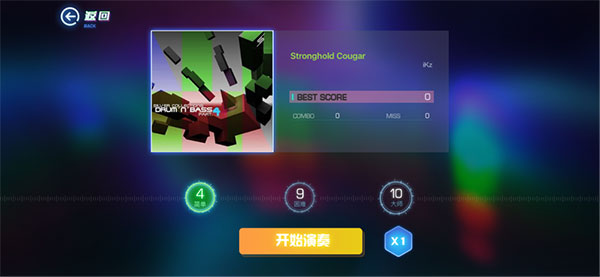 在点击想要挑战的曲目后,界面如下图所示。在这个界面中达人们可以自行选择X1-X5的倍速哦,当然难度也是从“简单-困难-大师”逐级递增的啦!点击“开始演奏”并对旁边的速度按钮进行调整之后就可以开启专属于你的音乐之旅啦♪~