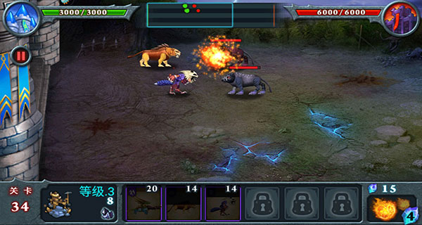 5、战斗策略。不要急于召唤兽王,待对手的兽王接近我方城堡时再应战。将战线控制在我方,有利于新兽王快速加入战斗,形成以多打少的局面,减少兽王的损伤。
