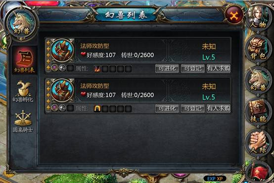 每个进入游戏的新人,都会有两只幻兽出现在幻兽列表中。你可以在按下菜单按钮后弹出的隐藏菜单中找到开启幻兽面板的选项,也可以直接从角色头像下方的快捷按钮处查看自己当前携带的幻兽