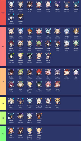 (1)T0:班尼特、枫原万叶、雷电将军、钟离、夜兰。