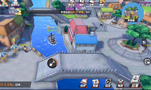 玩家来到这个罗格镇近海的区域,然后在如图所示的地方,就是这个桥的上面,需要你乘船才可以来到这个地方。