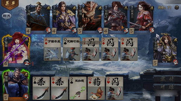 单杀主宰朱元璋搭配刘邦加断粮,尽管能够封号所有搭配,但这会是创建在前二个回合合理模式底子上的,大概中央就要祷告自身人品不可以尤其差。为什么前二个回合玩时要尤其稳重呢?由于假如人品不会是很好的话,大概第1个英雄会位于被动状况。断粮是要损耗两点粮,一回合只能积累一些,换句话说,最少要到第3个回合才可以发起断粮技能。在此之前假如有一名英雄提早阵亡的话,辣么后边面对的只能是一挑二了。再者,咱们也要依据敌方英雄合适选择第一位上场英雄。假如敌方英雄对手牌的威胁性挺大,咱们最佳选择朱元璋上场,以后让刘邦上场拿下威胁性英雄。假如敌人的威力相对强,回合完结时候让隐蔽性较高的朱元璋来迎战!