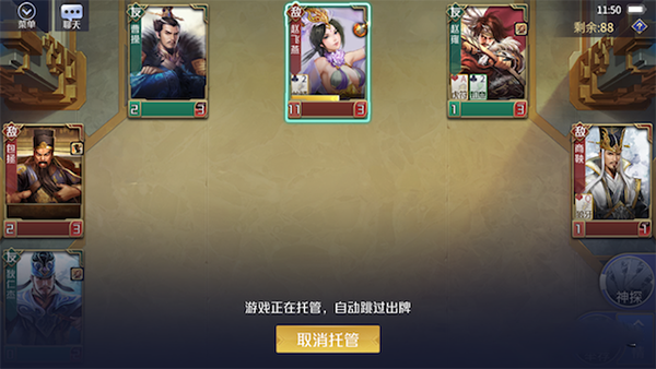 院长也是单挑的老牌强力人物了,同刘邦和和尚不同的是他是在没手牌的时候可以再度进行摸两张牌。我们知道一个英雄手牌越少那么它的防御力就越低,但是强运机制的存在却让朱元璋永远不可能手牌为空,敌人同他进行单挑就会非常难受,尤其是院长拿到虎符之后,适当的存牌将手中的闪桃等出不出去的牌丢掉,一回合无限摸牌秒杀对手十分轻松。