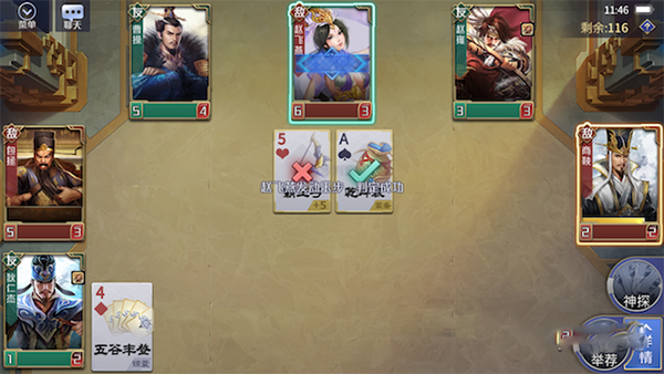 闯关中可以分为防御型和攻击型两种。防御的话就给她戴上图强、玉如意和轻灵等印记,再加上手上的闪就可以多次进行额外摸牌,图中的boss很难打掉我们的血量;攻击型则尽量要使用烽火或者万箭印记,再配上刘邦换牌的技能,每回合摸牌然后进行驭人换牌,很快就会刷到虎符等强力攻击武器,过关将会非常简单。
