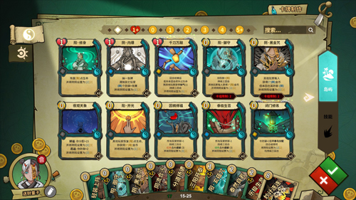 在游戏之前,我们需要组建自己的套牌,岛屿套牌(10张)和技能套牌(15-25张),其中岛屿牌组的点数必须在-3和+3之间,技能牌可从选定职业卡牌和中立卡牌中挑选。