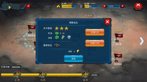 通过关卡会有几率掉落电子元件,但是只限于第一个和第二个地图的关卡。我们可以集中刷前两个地图,扫荡掉落几率会更高。