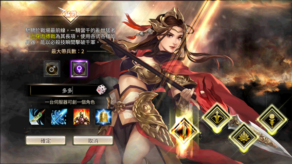 4、然后取一个昵称,并选取角色职业,包括豪杰、猛将、方士、军师四种;