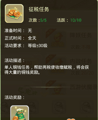 游戏中的活动主要分为日常活动,限时活动,节日活动,每天都做完,毕竟这是游戏里面铜币,银币的主要来源,虽然少,但多少也是钱是不是,能赚一点是一点啦!竞技场的排名千万不要放过,只要有排名每天给积分,打同段位和高一段位的,切莫杀低段位的小号,我们要杀就杀低级高段位的小号,4个木桩会变动,有空看看有没有这样的菜。每周300环可跑可不跑,如果要跑,超过10万铜币就传说,每到100环,会比较难打这时候配上双封还是有机会一个人单独过的。帮派求助,能帮助的尽量帮,有帮贡,还有经验,侠义分,狭义分和竞技积分可以换还童丹,毕竟银币限购还童丹,个人认为比较划算。炼药 学10级-20级 此时活力性价比极高 每天卖丹药铜币让你赚的盆满钵满。帮派强盗杀了5次可以继续杀,一样有经验,毕竟这也是游戏经验的主要来源,杀完以后还会掉落宝箱,每天可以拿5个箱子。