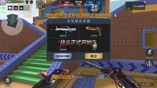 大家都是空手加入游戏,完全随机的武器。这时候不管是你的武器还是对手的武器都是一起发放的,这个时候就可以带着你的小伙伴来一场热血的战斗了,千万不要忘记这可是随机的武器,灵活应对一切变数,当然也需要注意和队友并肩作战啊!!!
