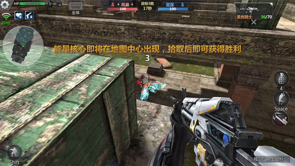 游戏开始一分钟之后,如果战斗还未结束,那么战斗将更加严峻。地图中间将会刷新一个能量水晶,夺取之后将直接获得胜利。夺取水晶需要站在水晶范围内三秒,这个时间可要注意对方的火力!时间归0未分出胜负,该回合默认血量高的队伍获胜,如两队血量一致则默认为雷霆战警胜。