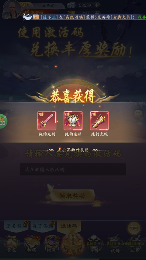 1、连续登录送五星齐天大圣,神将助你轻松推图