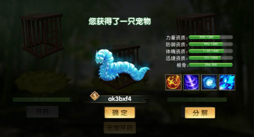 4,抓捕到宠物后可以看到宠物的基础信息,也可以把条件差的宠物直接分解掉。