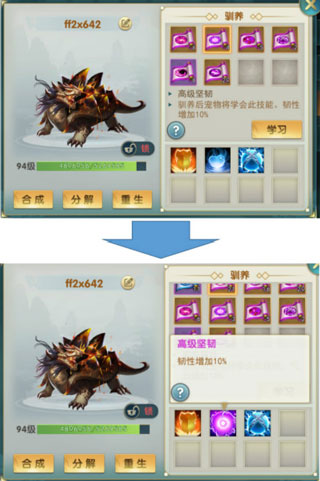 关于合成还有一个重要的点是需要玩家先考虑清楚的,也就是你需要的是多技能的宠物还是高资质的宠物,这决定了你合成的策略。
