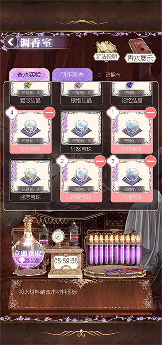 在游戏中可以自己开店,通过熏香获得制作香水的原料,最终获得不同星级的香水。
