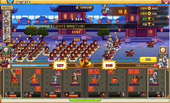 在【演武场】中战斗持续6回合,只有当一方兵力为0才算胜负,如6回合后没有将对方全部兵力消灭则是你战败了。