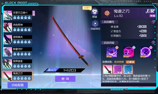 最后两把是鬼道之刃以及冥界使者了,面对上面四把武器的主被动技能,二者就显得有些暗淡了,放到了最后的属武装位置。不是因为不强,而是在这套体系下,它们的技能不如其他组合好用。