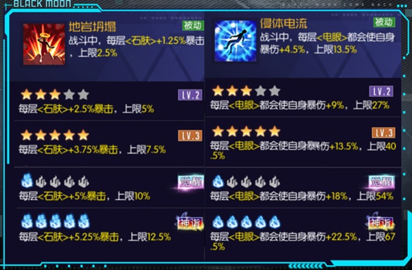 被动技能选择携带震颤地壳和天侯的,这两个被动技能相辅相成,<地岩坍塌>增加暴击,<侵体电流>增加暴伤,外加两个武装的连携技能也有增加暴击暴伤的效果,可谓是非常完美的被动技能
