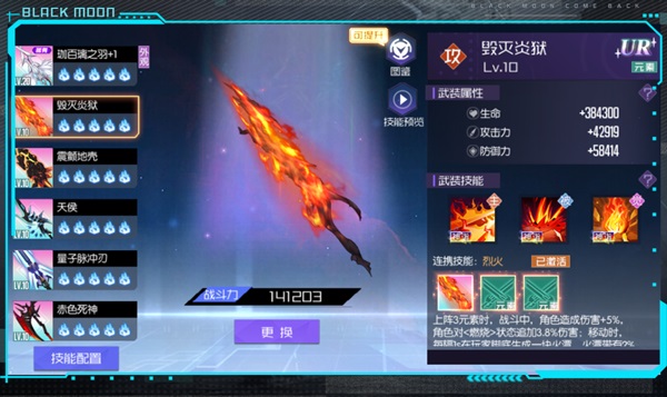 1、主动技能选择携带珈百璃之羽的<至高神罚>和毁灭炎狱的<炎狱审判>,作为游戏中两把稀有SSR武装之一的珈百璃,它的主动技能伤害系数是非常可观的,可以说是非常强大的输出技能,尤其是升级后的技能,如果掌握好释放实际,能够打出惊人的伤害;毁灭炎狱的