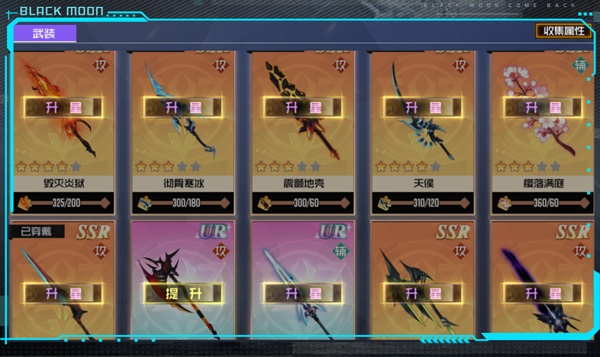 看到这里各位神选者可能不太明白为什么图鉴有什么可了解的呢,听我慢慢道来~黑月的武装图鉴并不单单是收藏作用,还会为角色提供可观的属性,每把武装每一次提升星级,都可以在图鉴中为角色增加属性,星级越高,增加的越多,也就是说,虽然武装只能上阵6把,但是其他获得的武装并不是只能摆放在仓库了哦,依然还是能够为整体战力提升不小的帮助。