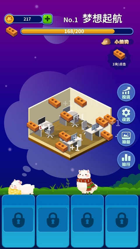 梦境建筑师手机版是一款休闲的点击+模拟建造游戏,来自外星的不速之客悄悄降临,他们带着未知的目的入侵了小羊驼的梦境,现在需要你帮助小羊驼提高能力,在梦境中完成一项又一项的建造难题!游戏玩法非常简单,点击主界面中的地块,通过搬砖来完成各种建造任务。