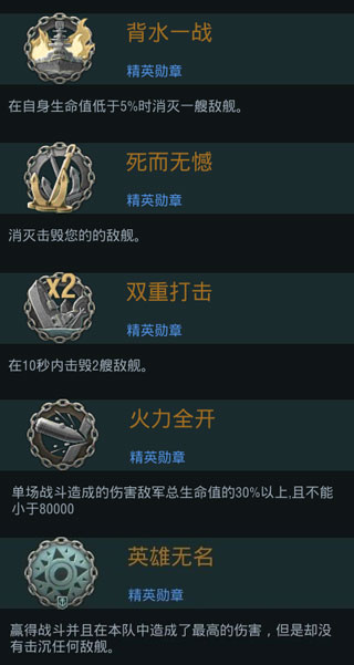 【双重打击】和【火力全开】一顿蛇皮操作、疯狂输出,相信很多舰长就可以拿到这两个勋章了,但是剩下的勋章……