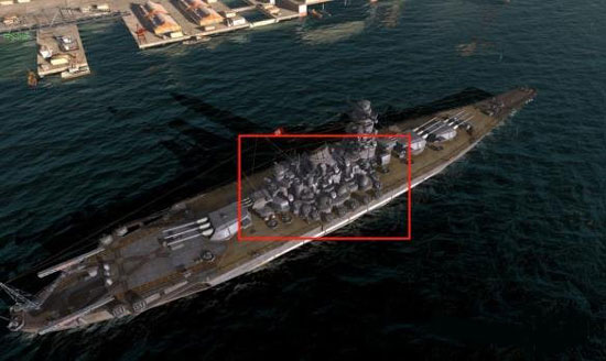 除了又粗又长又威猛的主炮,不知道舰长们有留意它战舰中部密密麻麻的炮台?大、小口径防空从来不嫌多,防空火力同样也不比M系的战列舰差!