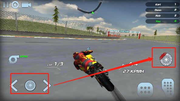 ps:在经历弯道的过程中,同时点击方向键与急刹键可轻松达成压弯的操作,具体效果如下图所示