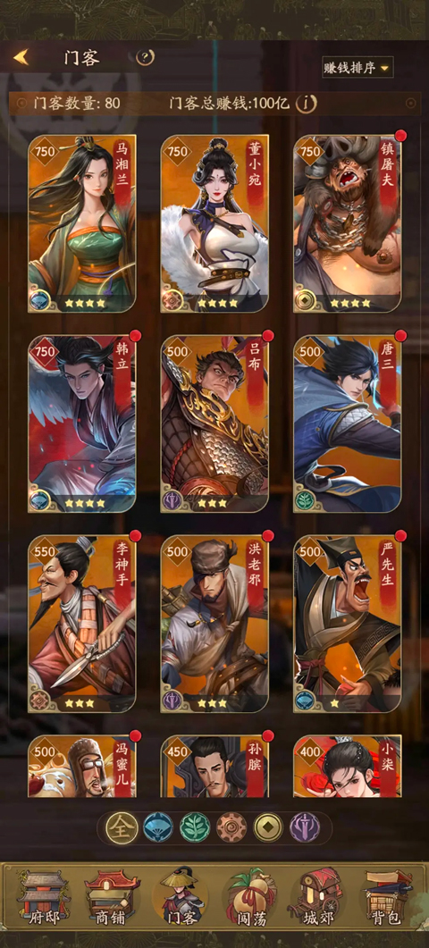 3、背包中有使用增加门客赚速的道具优先给上述门客使用!